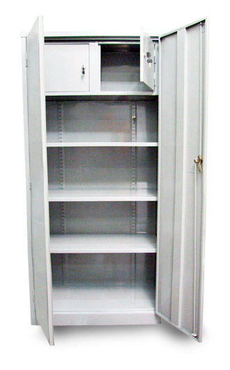 Armarios Metalicos son pintados y secados al horno previo proceso de decapado y fosfatizado en acabado texturizado de colores gris y beige con negro, además de variados modelos como: con caja de valores y 3 anaqueles y, sin caja de valores con 4 anaqueles.